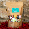 WINE GUMS, FLYING SAUCERS, TWIN CHERRIES, WATERMELON SLICES, JELLY SNAKES, MINI FANGS, CANDY NECKLACES, FIZZY TEDDIES.