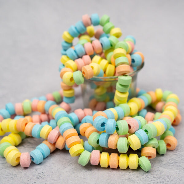 Whatever your age, these take you back to your childhood! Remember the damp cotton around your wrist as you nibble your way around these hard candy sweets.  Bite them off and see how long they last!
